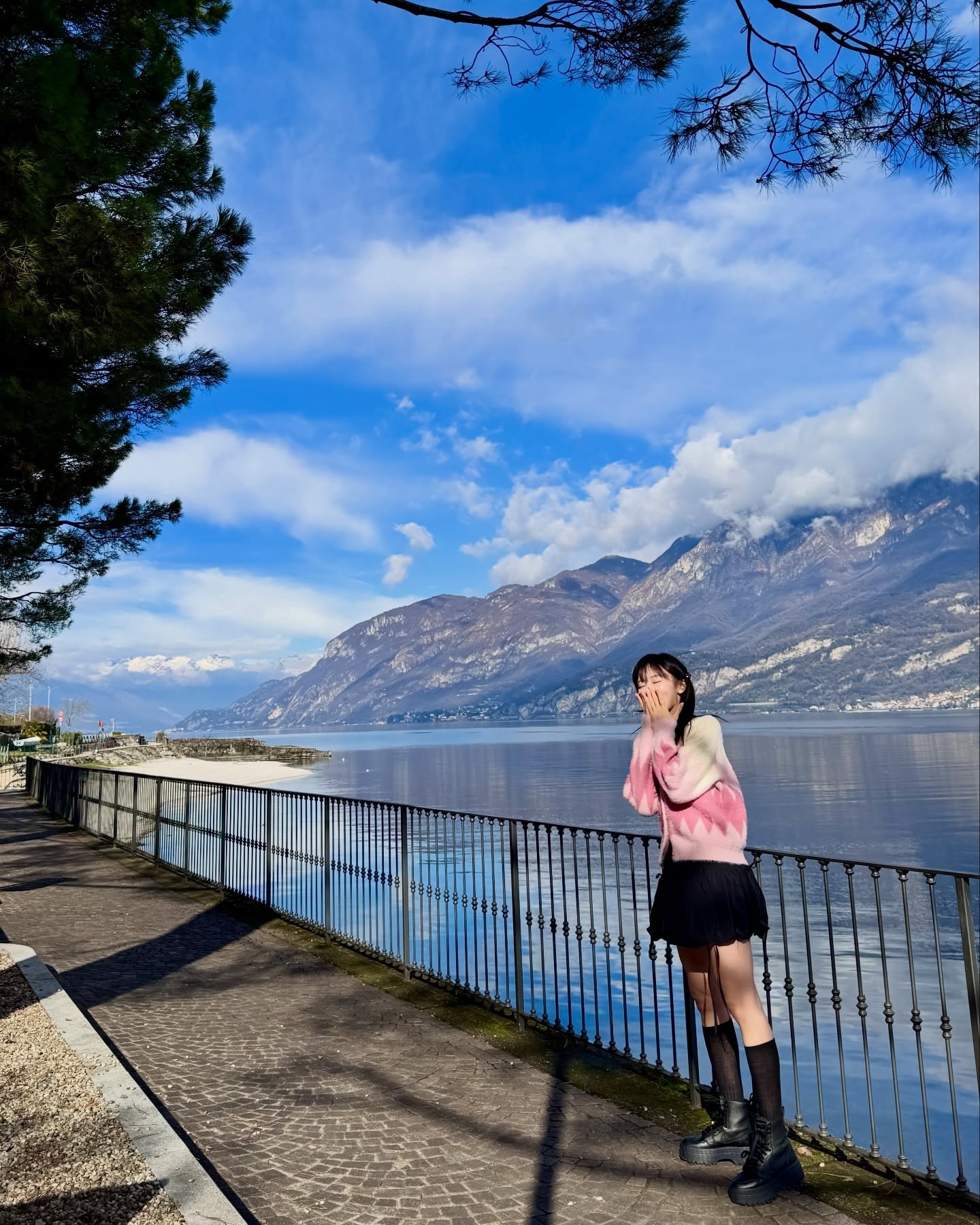 코모 호수의 드라마틱한 배경 속에서도 단연 시선을 사로잡는 건 그녀의 환한 웃음이에요 😆 힐 있는 워커 부츠에 니삭스를 더한 코디는 유럽 자갈길에서도 거뜬한 편안함을 주면서 MZ 감성까지 뿜어내줘요 🌈 실용성과 스타일을 동시에 잡은 이 룩은 여행 패션의 교과서라 할 만하죠~