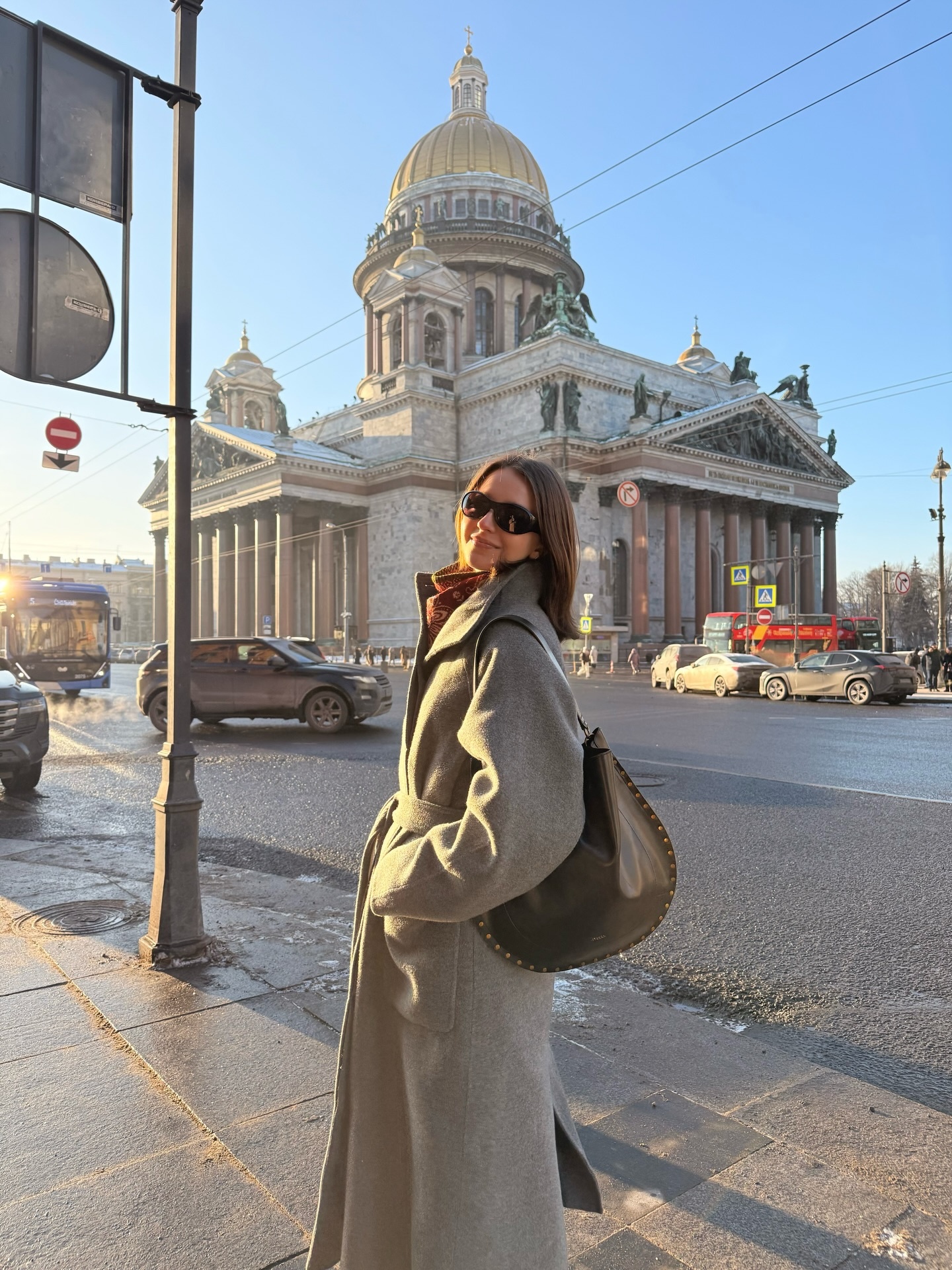 성 이삭 성당 앞 그레이 롱코트, 건축물이 들러리가 된 순간 🏛️