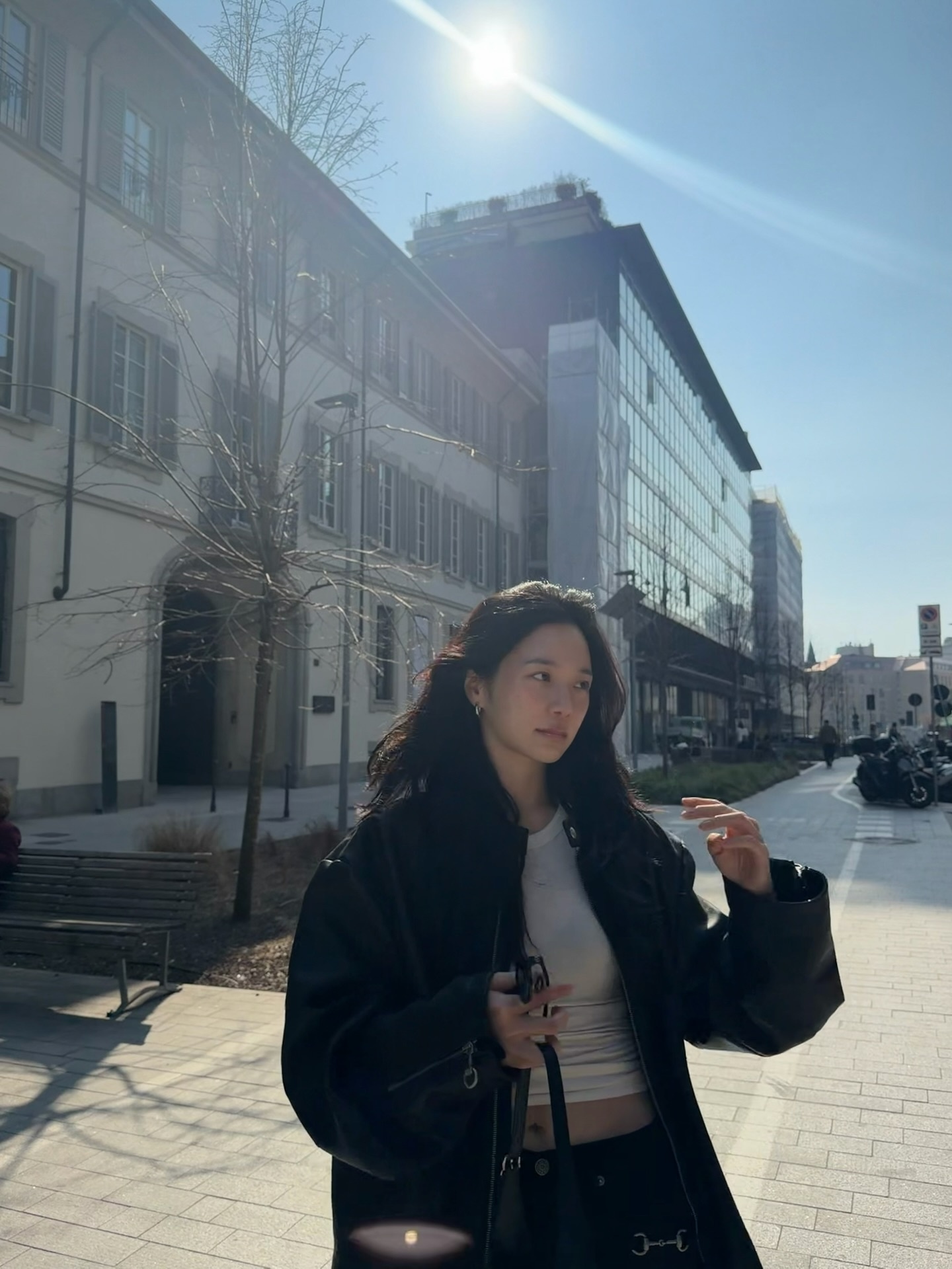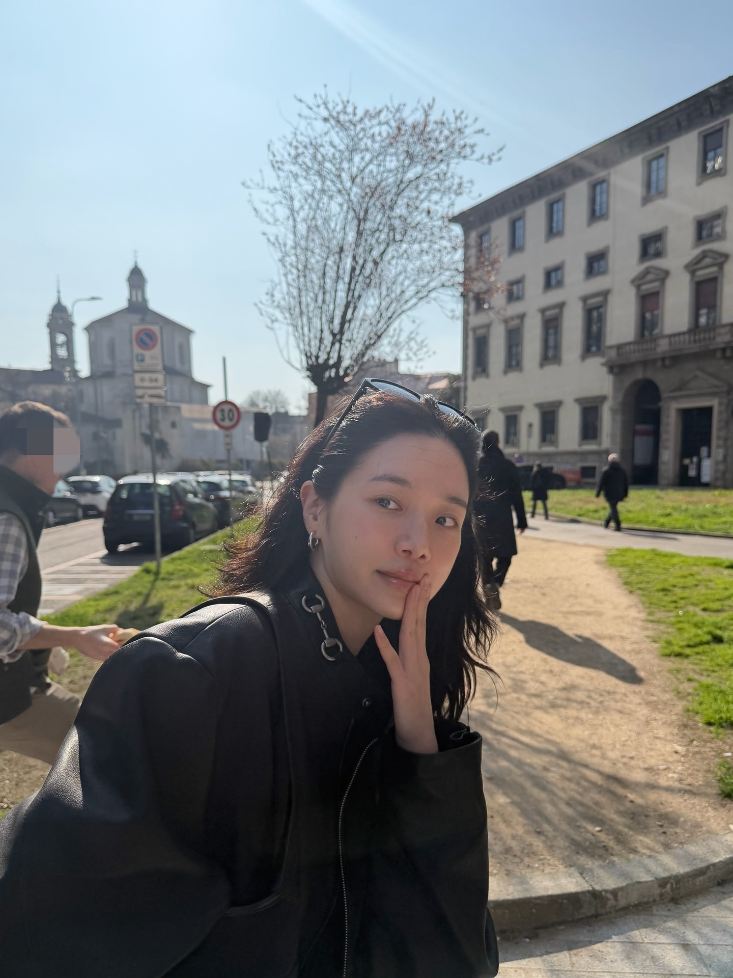 밀라노 햇살이 더 빛나게 만든 박규영의 레더 재킷 무드 ☀️