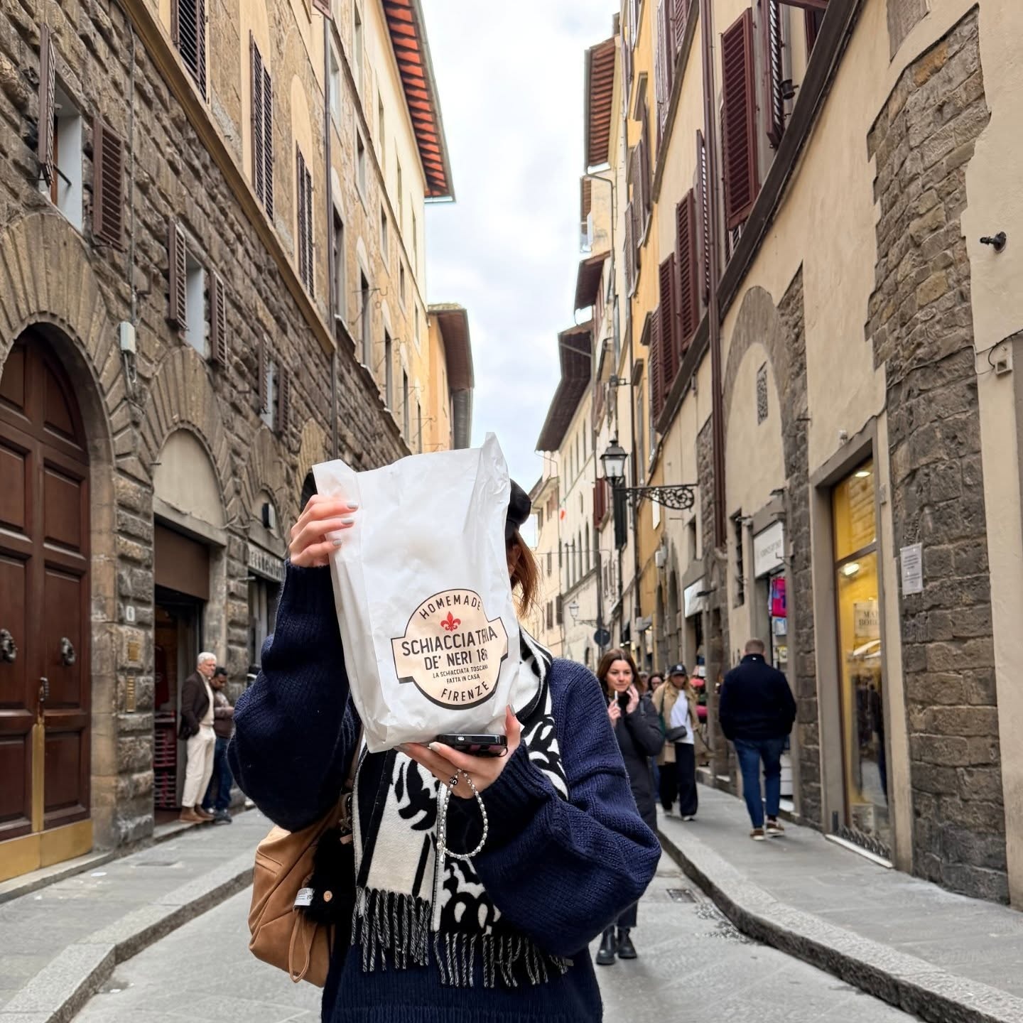 강변에서 촬영된 허윤진의 레이어드 스타일도 눈을 떼기 어렵네요 💙 오버핏 네이비 니트에 블랙 앤 화이트 모노그램 머플러를 볼륨감 있게 둘러 강렬한 포인트를 줬는데요, 피렌체의 고풍스러운 석조 건물과도 완벽하게 어우러져요. 블랙 캡을 살짝 내려쓰고 팔짱을 낀 채 카메라를 응시하는 표정에서 시크하고 여유로운 무드가 넘쳐흘러요 🌊 아치형 다리와 잔잔한 강물이 허윤진의 뒤에서 진짜 화보 배경이 돼 주고 있어요!