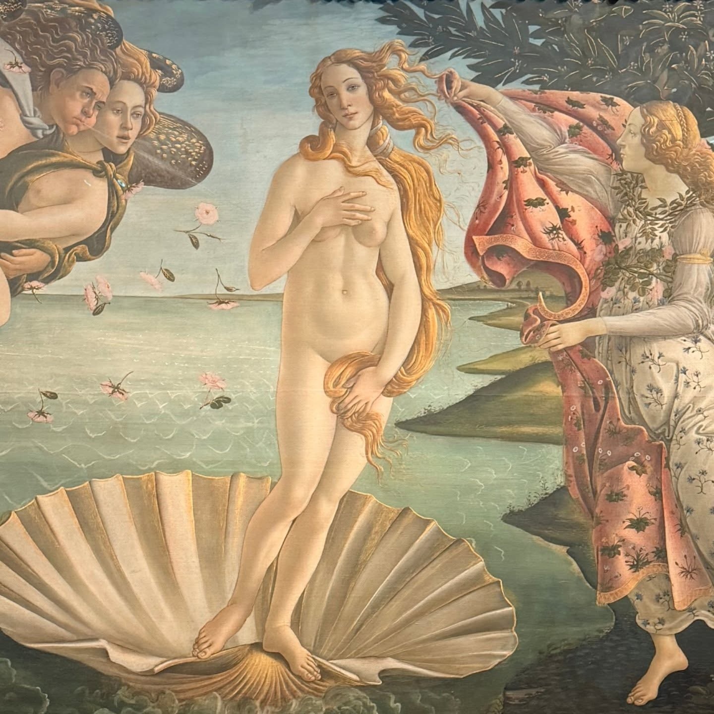 피렌체 궁전 실내에서 포착된 아우터 룩도 인상적이에요! 온통 황금빛 장식으로 뒤덮인 궁전 천장을 올려다보는 장면 속, 베이지 테디베어 퍼 코트가 화려한 배경과 선명한 대비를 이루고 있어요 🐻 부드러운 퍼 소재와 바로크식 황금 장식의 조합이 의외로 너무 잘 어울리죠? 스트라이프 팬츠로 룩에 경쾌한 리듬을 더한 것도 허윤진만의 센스예요. 클래식한 공간에서도 존재감을 잃지 않는 스타일링 실력!