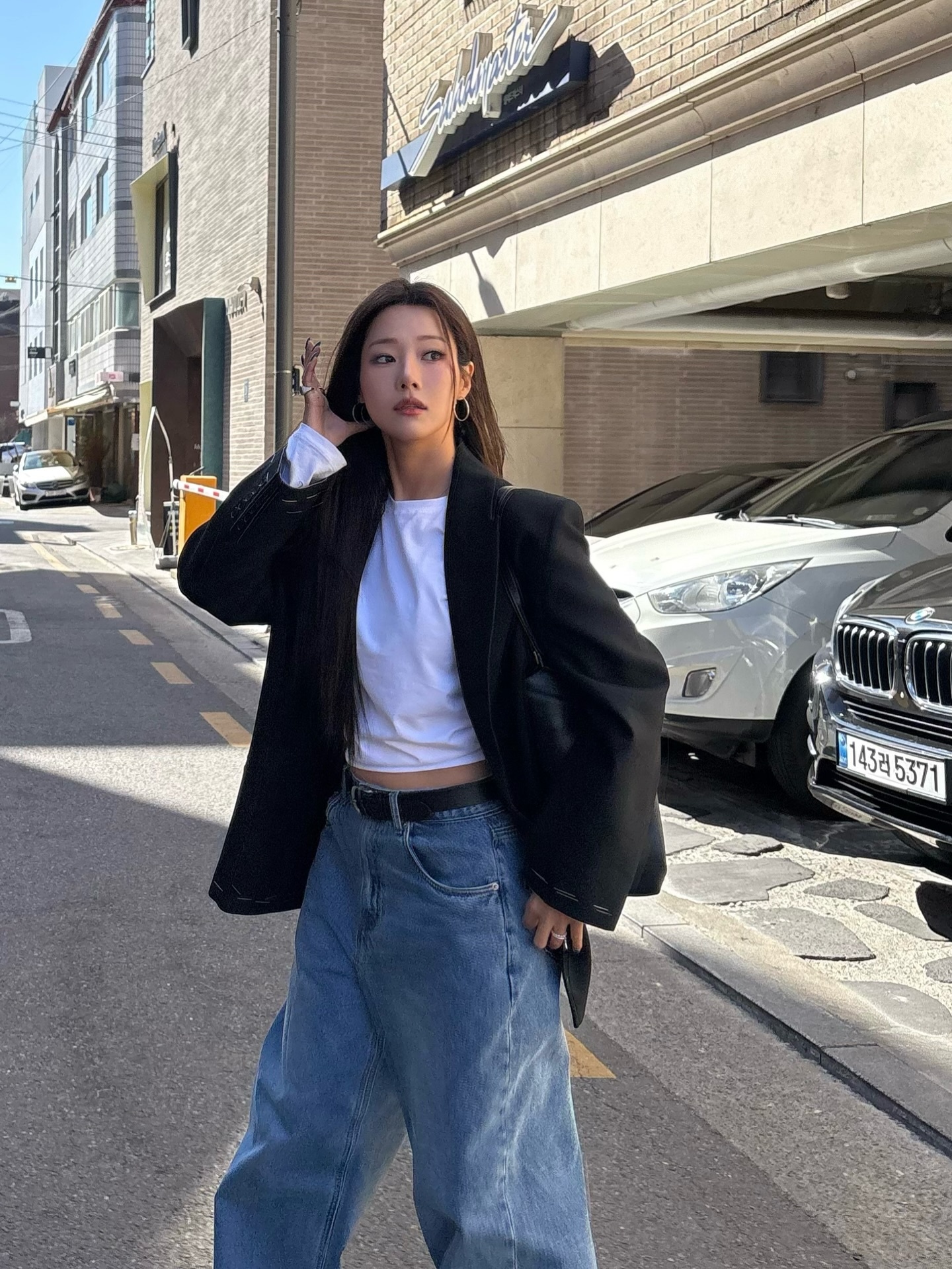 #배지연 #배지연패션 #블레이저코디 #꾸안꾸패션 #와이드데님 #크롭톱코디 #스트릿패션 #봄코디추천 #블랙블레이저 #데일리코디
