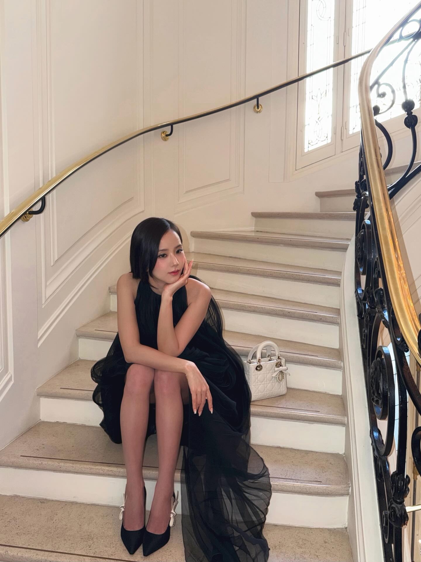 블랙핑크 지수가 파리 고저택의 나선형 계단에서 디올 블랙 튤 드레스로 완성한 시네마틱 룩이 화제예요! 🖤