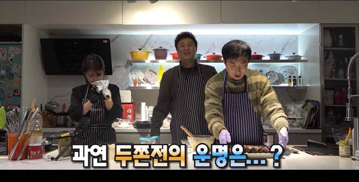훈훈한 만남도 잠깐, 제작진이 내놓은 과제가 기가 막혔어요! 바로 '두쫀전' 만들기 😂 박명수가 "두쫀쿠(두바이쫀득쿠키) 유행이 한풀 꺾였다"고 하니까, 정준하는 "두쫀전을 하래, 제정신이냐"라며 기가 찼대요 ㅋㅋ 김치전 악몽이 있는 사람한테 또 전을 부치라니 제작진 센스가 진짜 대단하죠 🤣