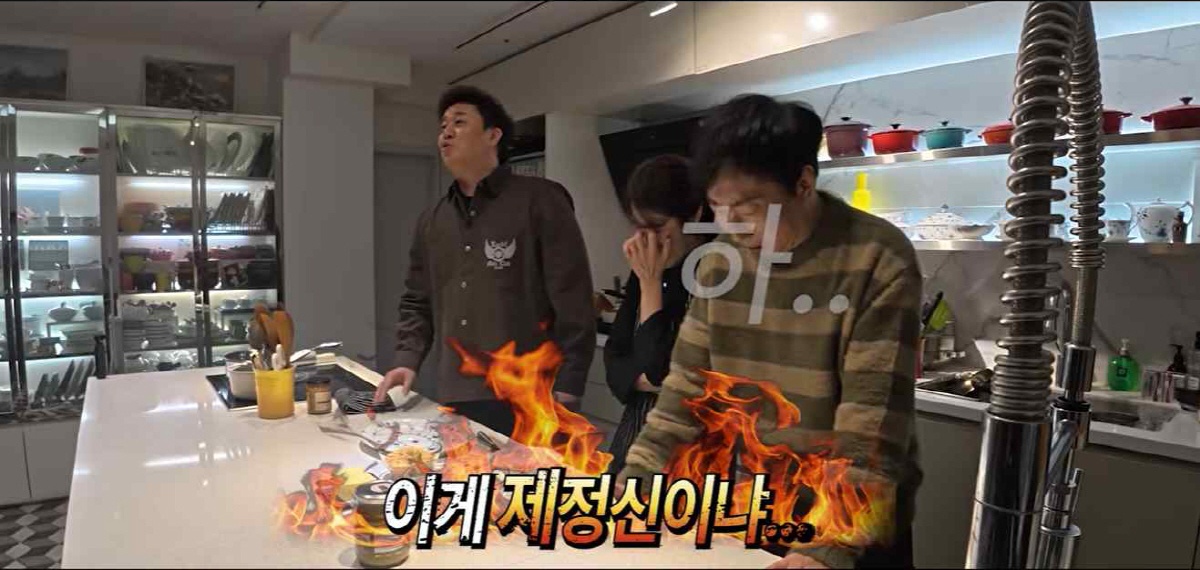 앞치마까지 갖춰 입고 두쫀전 요리에 뛰어든 셋! 😂 시간이 갈수록 주방은 아수라장이 되어갔대요 🤯 명현지 셰프도 황당한 상황에 웃음이 멈추지 않았고 "으악 냄새!!!"라는 비명이 터져나왔답니다 😭 과연 이 카오스 속에서 두쫀전이 무사히 탄생할 수 있었을까요?!